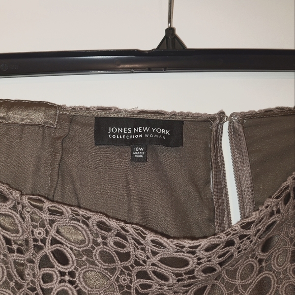 Skirt with lace overlay on stretch satin from Jones New York Plus size 16W. The lining makes this very comfortable. The colour is close to a mocha brown but Pantone equates is with copper, even though there is not much of a red tone. It's been worn a handful of times, paired with a black satin blouse and black patent heels and with a simple white blouse and sandals.