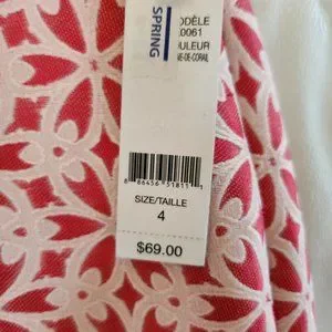 Skirt in a pink and coral pattern. Lord & Taylor size 4. Lined, 1/4 zip back. Brand new, never worn, with tag.