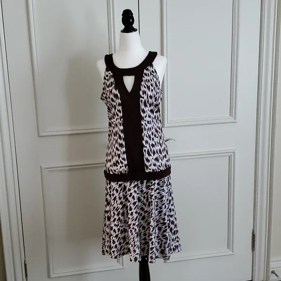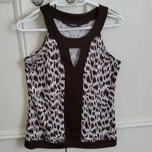 white-dark brown design. Made in Canada. 90% polyester 10% spandex