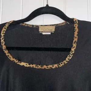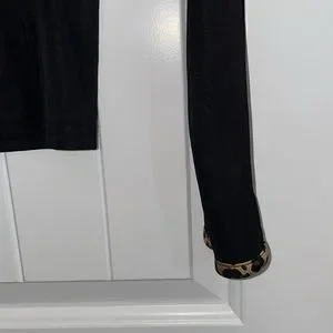 If you like a little animal print this outfit has it. Even the bottom of the sleeves are anamalistic. Stretchy fabric and easy wash & wear.