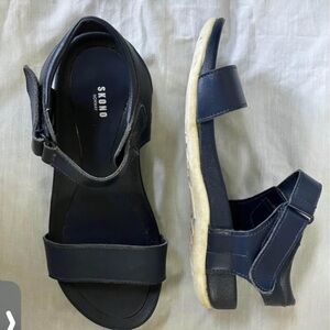 Skono Norway women’s size 7 (eur 38) sandals Velcro closure, navy / dark blue some wear on soles but they still have some grip