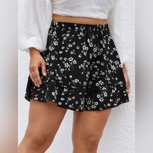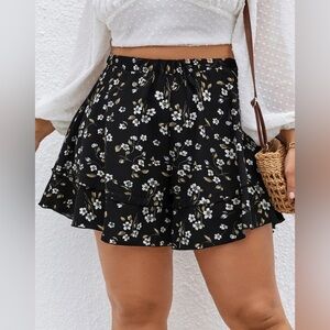 Stylish black skirt featuring a delicate white floral pattern. Looks like a skirt, but it’s shorts. Very cute, ideal for casual wear.