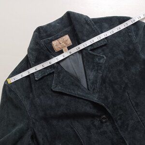 A versatile black suede jacket, a classic vintage charm. Made from genuine washable suede with a structured, non-stretch fit. A stylish upgrade from your everyday denim jacket. Transitions effortlessly from day to night. Perfect for fall and early spring. Like new, excellent condition.