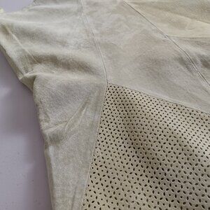 An elegant skirt in a beautiful soft pistachio green shade. Made from supple washable suede, fully lined, with subtle stretch. Falls at knee-length, fit and flare silhouette. Ideal for spring and fall layering. New with tag. Excellent condition.