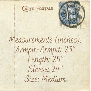 It measures approximately 23 inches from armpit to armpit, 25 inches in length, and has a 24-inch sleeve length.