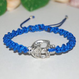 Skull Charm Bracelet,Skull Bracelet,Drawstring Bracelet,Blue Bracelet