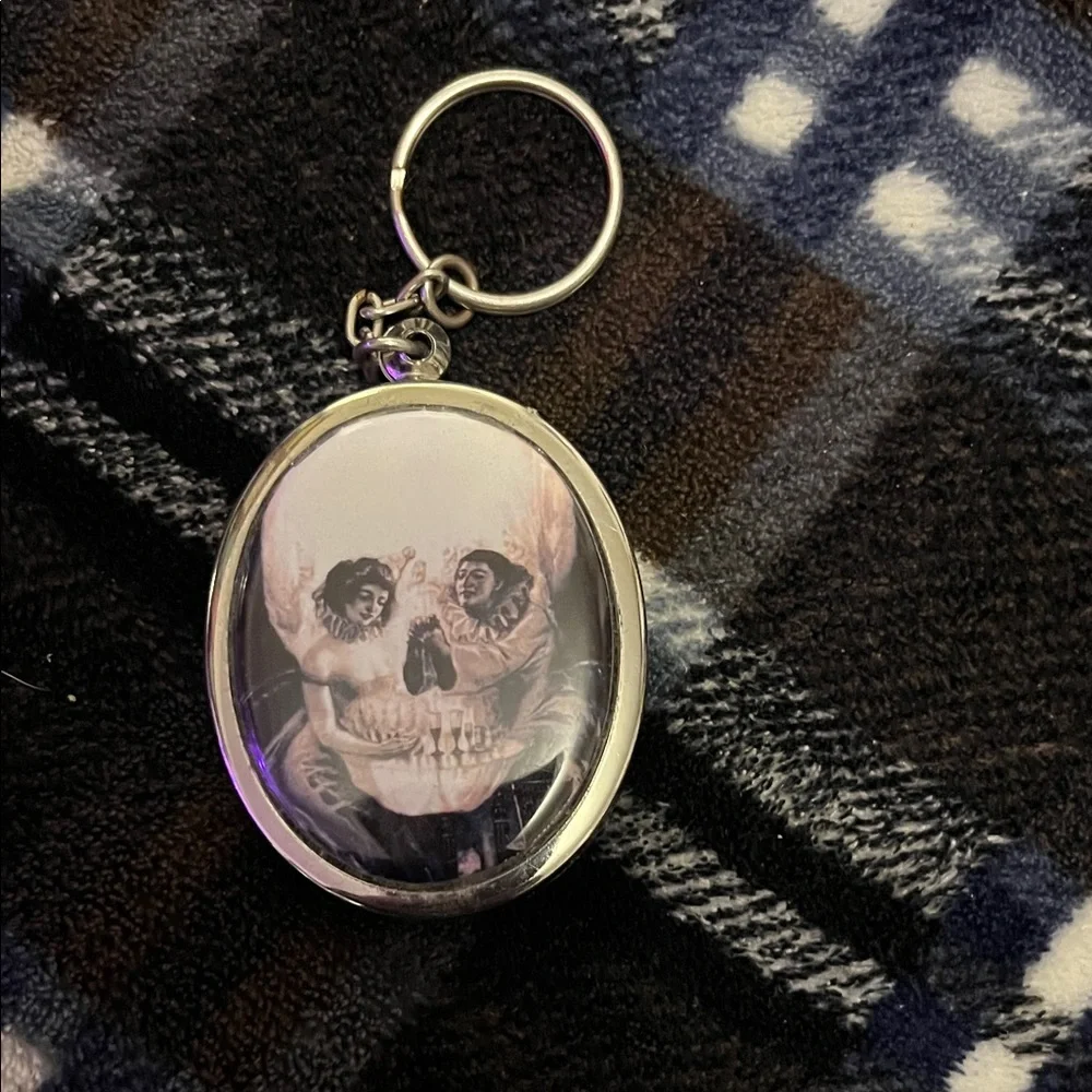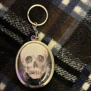 Unique keychain with a skull design. Perfect for adding a touch of style to your keys.
