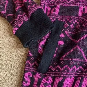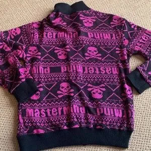 Skull patterned thin zip up hoodie with pockets. No size but I would guess it is a size small. Excellent condition.