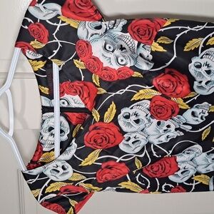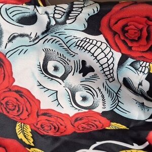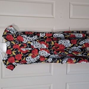 Very good gently used condition. 100% Polyester with a satin like feel. Comes with a waist tie, but no loops on the dress or any evidence that there ever were loops. Please see where measurements were taken in the photos. Size medium. Day of the Dead. Goth. Edgy. Punk. Halloween.