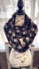 Skulls infinity scarf, handmade. Looks new. Because it was handcrafted the stitching isn’t perfect but it’s not much and definitely not noticeable. The scarf is quite long and is easily doubled.