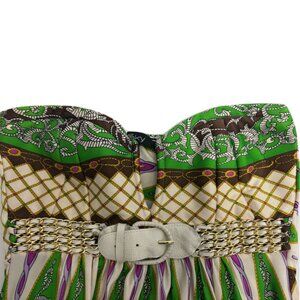 Blocks of vibrant colors and print make this mini a must have! Braided leather belt under the bust to make this outfit a stunner.