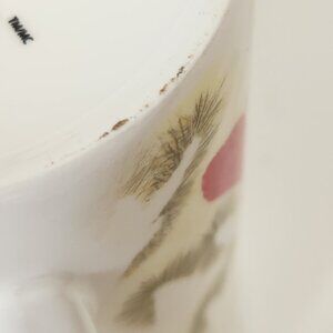 Cardinals decorate this stoneware mug, complete with lid and tea leaf strainer. Designed by Skye McGhie, Mindspring Studio, 2009. Some small flaws in glaze (see photos). Non-smoking home, no pets.