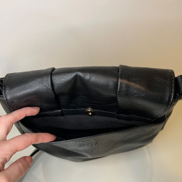 Skyla Black Vegan Leather Cross Body Purse Adjustable Strap EUC