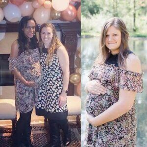 Slate and Willow Floral Maternity Dress Off Shoulder Lace Shift Size XL Pink