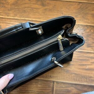 Sleek Black and Silver Crossbody Bag with Structured Design