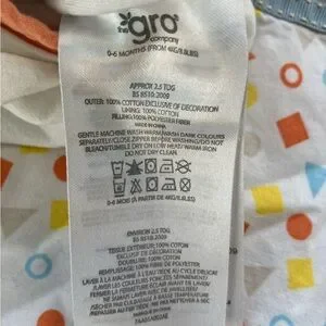 Grobag sleep sack with animal design Side zipper and buttons at shoulders Tag says from 8.8 lbs