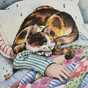 Sleeping Cat Gary Patterson Plaque Art Print Sandman Bedtime Cat Nap Calico