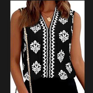 ** Sleeveless Chiffon V Neck Tank Top with Floral Print