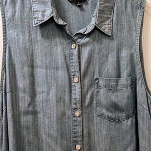 Denim tunic. Light blue. Cotton. Washable. Full button front.