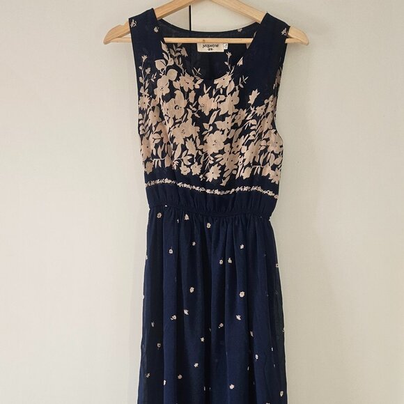 Sleeveless Navy Blue Floral Maxi Dress size L