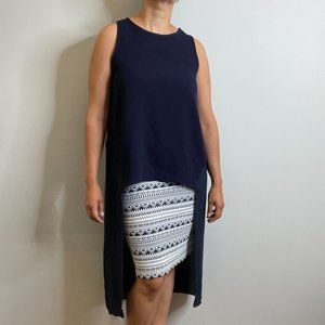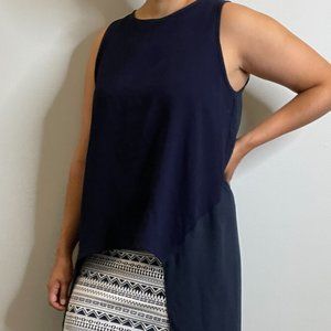 Sleeveless Navy High Low Top -M-