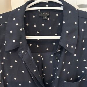 Sleeveless Navy White Polkadot Button Blouse with Collar