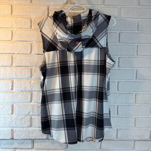 Sleeveless Plaid Stretchy Hoodie in Black and White XL EUC NWOT