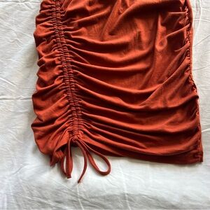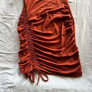 Sleeveless Ruched Rust Dress
