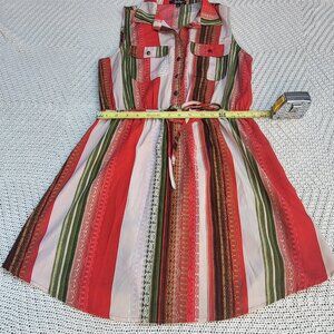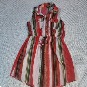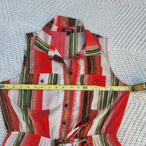 Sleeveless Shirt Dress Button Front Elastic Waist Large