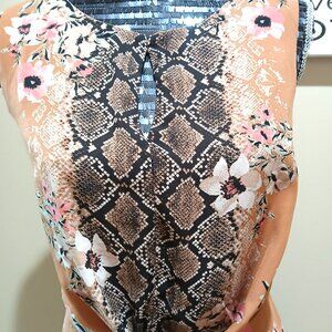 A lovely spring/summer top in beautiful condition. It has very pretty details and colors. Key-hole opening at the front and back with a button closure on the back opening. The back waist has elastic, no elastic in the front. This is from my personal closet. I took the size tag off becasue it was scratchy. It is a large. Please CHECK MEASUREMENTS!