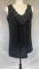 feature at rounded V-neck. Sleeveless. Wrinkled look and a faint sheen to the fabric gives this statement top some edge. Feminine Bold Biker inspired with Y2K features. Size Medium (see measures for preferred fit). Good Used Condition GUC.