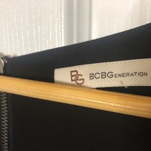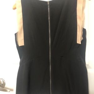 BCBGengeration, Small, Black with blush trim, excellent condition, synthetic, zipper down the back, A frame waist, lined