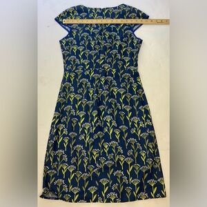 Classic simple cotton summer dress. with V-neck, back zipper, short sleeve with blue trim on sleeves. This dress has no labels but is well constructed and finished