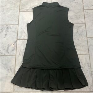 Stylish sleeveless dress in dark green with a pleated skirt. Perfect for casual outings.
