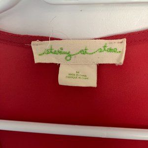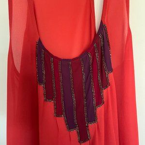 Gorgeous pink blouse with pink/purple pattern and beading at neck.