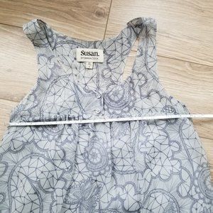 Sleeveless tunic dress with printed lace pattern. Brand is Susan by Emma Cook, purchased from Urban Outfitters. Outer is silk, inner lining is polyester. Please note that even with the lining, this dress is on the sheer side. No pockets. Side zip. Excellent condition, never worn. Offers welcome.