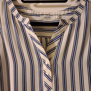 Cute striped blouse perfect for the workplace. Airy and light material. On the verge of being sheer, but I haven't ever worn any camisole underneath.