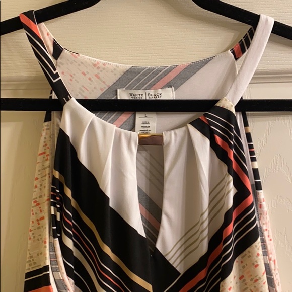 White House Black Market sleeveless layered top. Keyhole neckline, top layer comes to a v at bottom of front and back. Base layer underneath with classic straight hemline. Very flattering. Worn once.