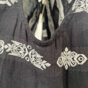 Dark navy/almost black, 100% cotton, sleeveless top. Not stretchy, long crop length. Made by Eve Gravel. Good condition & versatile top. Button clasp at the nape of the neck. Size Medium.