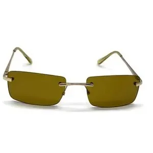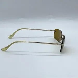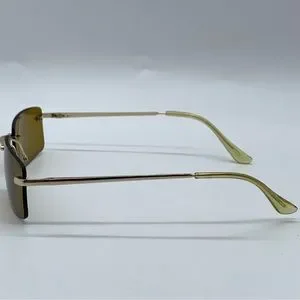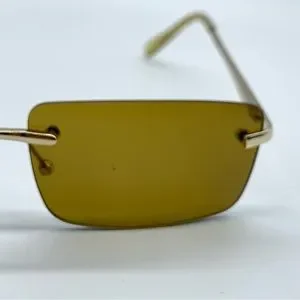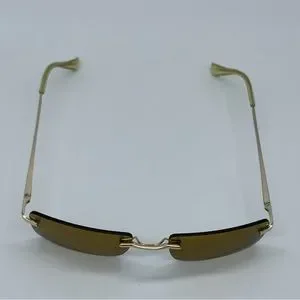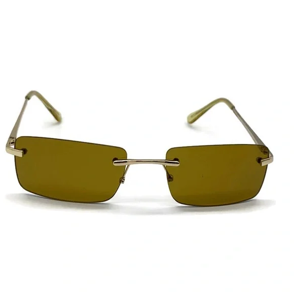 Slim Retro Rimless Rectangular Sunglasses in Gold- Brown