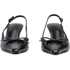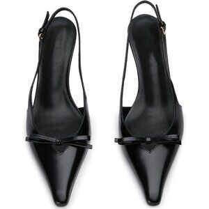 🆕Slingback Heel Women Bow Pointed Toe Kitten Heel Pump Black Synthetic Stiletto