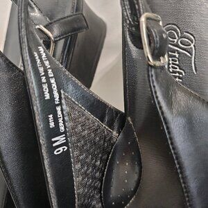 Chaussures femmes chic Traditions, couleur noir, talon bas, ideal pour le travail, légère égratignure pied droit comme sur la dernière photo