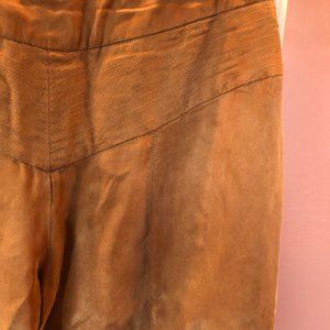Amazing super soft bell-bottoms in the most gorgeous suede-like material that shines in the sunlight (photos don't do these justice!) No size indicated, but I generally wear a size 27 in bottoms and found these to be slightly too tight.