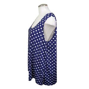Slinky Brand Womens Plus 1X Top Navy Blue Polka Dot Travel Stretch Sleeveless