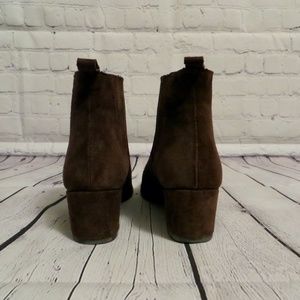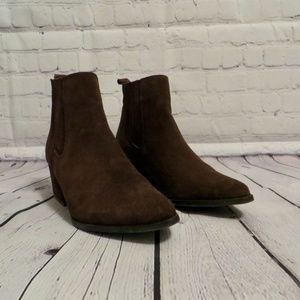 Beautiful dark brown real suede ankle boots! Purchased earlier this year from Little Burgundy. Unfortunately, I have to sell them as they are too narrow. Size 6. Only worn once, they are pretty much brand new. No shoe box available.