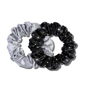* This set includes: 1 x black, 1 x silver scrunchies with crystal embellishment.
