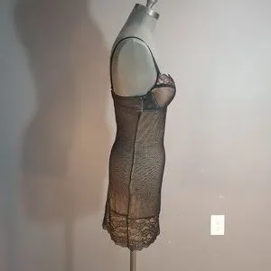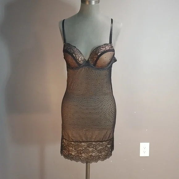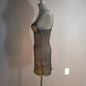 Slip size medium black. As seen in videp and pictures not in perfect condition but would be a good base for someone wanting an inexpensive undergarment piece for shaping. Slightly padded in bust.