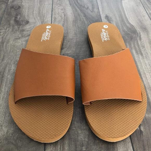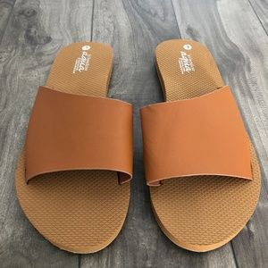 Comfy, breezy slip-on sandals from La Vie En Rose. They are marked as a size "large." I am a size 9 and they fit just fine.