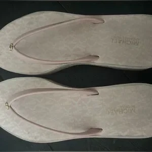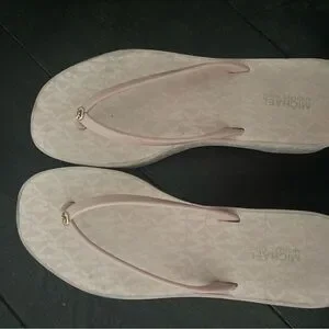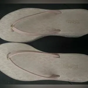 Pink Michael kors slippers dirty in some areas but easy to clean and it still working it’s still wearble