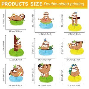 Sloth Kawai Party Centerpieces Decorations w/ Green Honeycombs 9pcs (SKU: 45MI)